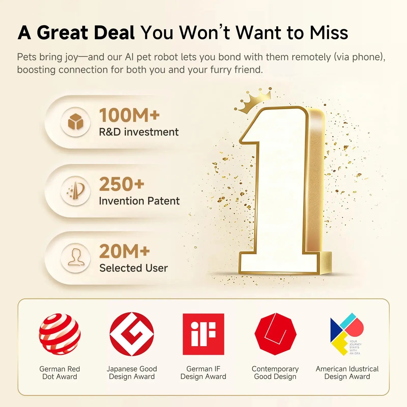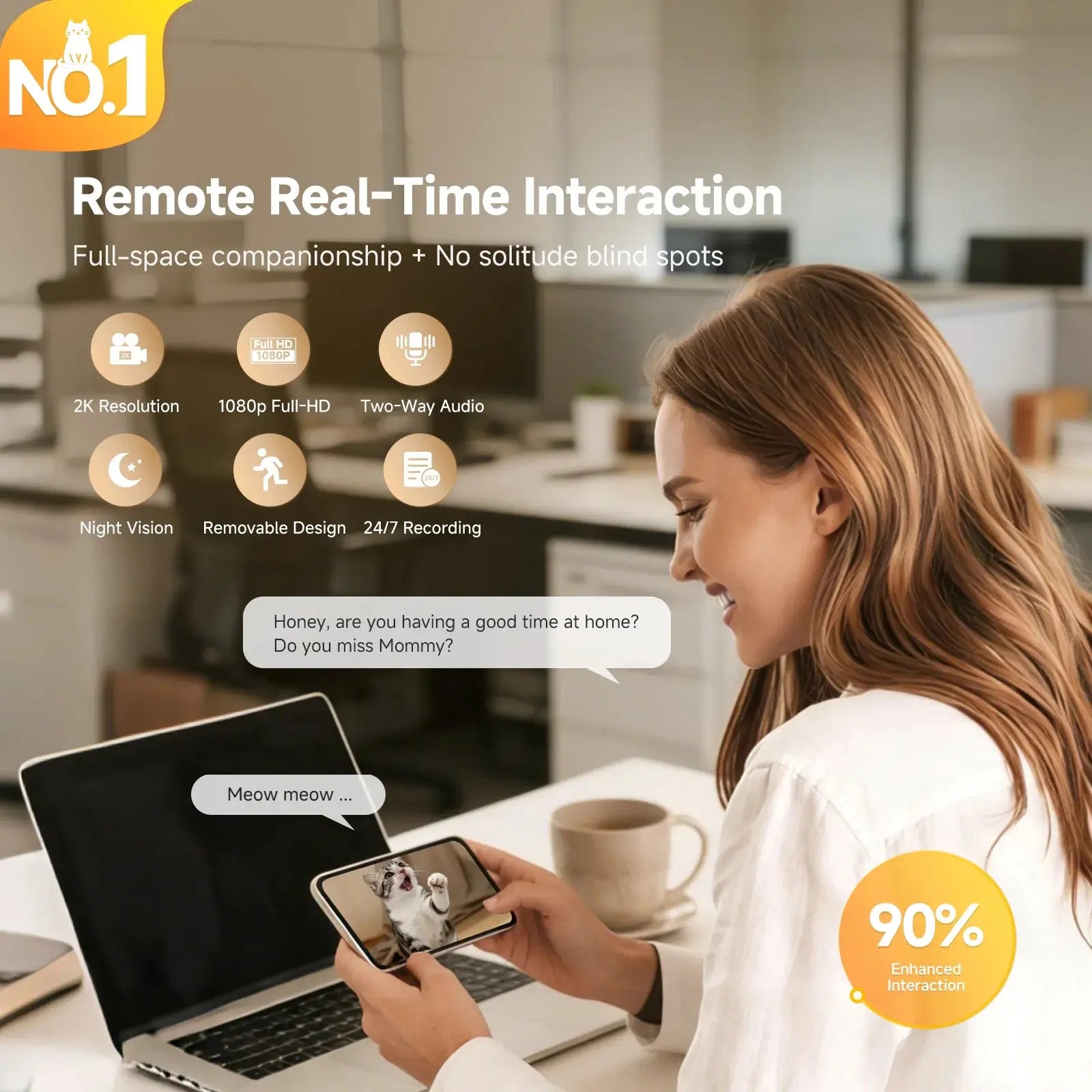 Remotely feed treats via the app and play fetch or red light games with your cat or dog; even when you're not home, you can maintain companionship and interaction, relieving your pet's loneliness and boredom. -